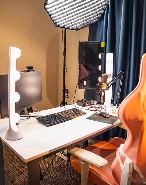 - Thiết kế không gian làm việc với đèn live chuyên dụng, máy ảnh chất lượng cao và phong cách trang trí trending, phù hợp định hướng hình ảnh và cá tính từng Nhà Sáng Tạo.